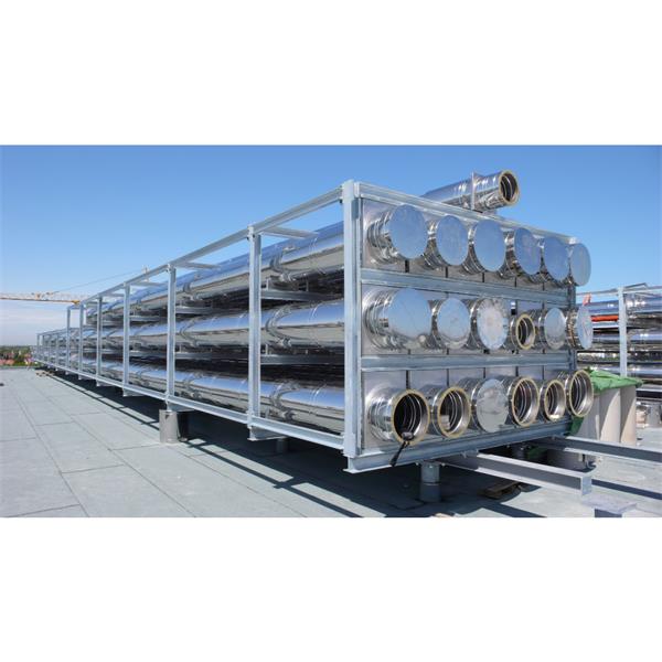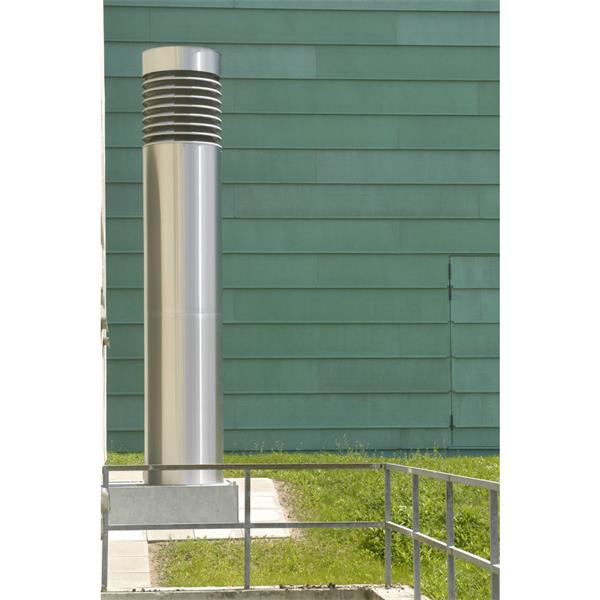 Double wall pressure-resistant flue gas system (resistant to 5000 Pa) made of stainless steel for all standard furnaces, combustion engines and CHP appliances in negative, positive and high pressure for dry and moist mode. Can be connected to block heat stations with flanges.